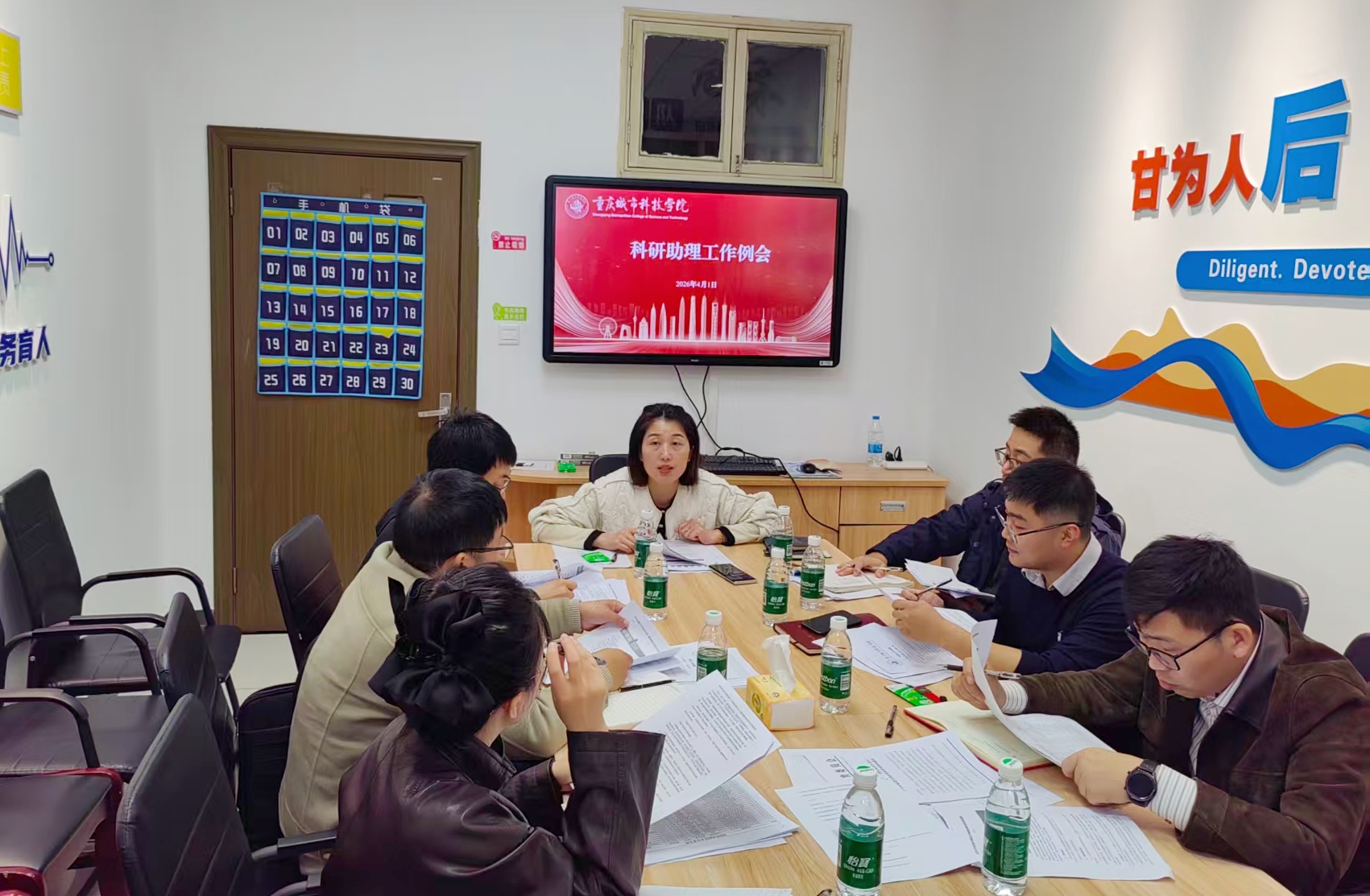 科学研究处在二行110召开2026年第二次科研助理工作例会,科学研究处主管蒋宗直对2026年3月份全校科研工作进行全面总结与复盘,明确了项目申报、成果结题与企业联络等各项硬性要求。